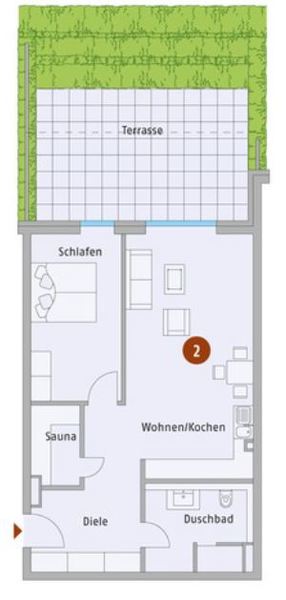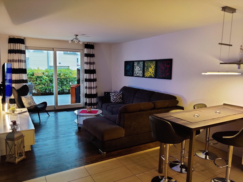"Entspannen Sie königlich in unserer exklusiven 2-Zimmer-Wohnung mit privater Sauna und Süd-West-Terrasse.
